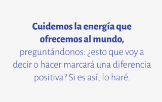 Cuidemos la energía que ofrecemos al mundo, preguntándonos: ¿esto que voy a decir o hacer marcará una diferencia positiva? Si es así, lo haré.