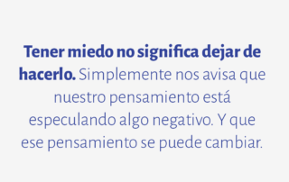 Tener miedo no significa dejar de hacerlo. Simplemente nos avisa que nuestro pensamiento está especulando algo negativo. Y que ese pensamiento se puede cambiar.