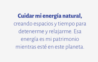 Cuidar mi energía natural, creando espacios y tiempo para detenerme y relajarme. Esa energía es mi patrimonio mientras esté en este planeta.