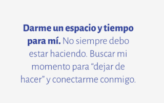 Darme un espacio y tiempo para mí. No siempre debo estar haciendo. Buscar mi momento para “dejar de hacer” y conectarme conmigo.