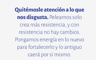 Quitémosle atención a lo que nos disgusta. Pelearnos solo crea más resistencia, y con resistencia no hay cambios. Pongamos energía en lo nuevo para fortalecerlo y lo antiguo caerá por sí mismo.
