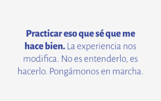 Practicar eso que sé que me hace bien. La experiencia nos modifica. No es entenderlo, es hacerlo. Pongámonos en marcha.
