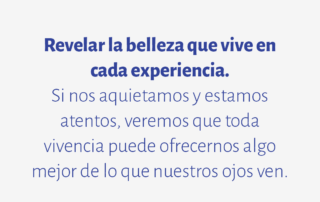 Revelar la belleza que vive en cada experiencia. Si nos aquietamos y estamos atentos, veremos que toda vivencia puede ofrecernos algo mejor de lo que nuestros ojos ven.