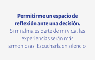 Permitirme un espacio de reflexión ante una decisión. Si mi alma es parte de mi vida, las experiencias serán más armoniosas. Escucharla en silencio.
