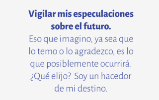 Vigilar mis especulaciones sobre el futuro. Eso que imagino, ya sea que lo temo o lo agradezco, es lo que posiblemente ocurrirá. ¿Qué elijo? Soy un hacedor de mi destino.