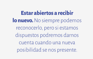 Estar abiertos a recibir lo nuevo. No siempre podemos reconocerlo, pero si estamos dispuestos podremos darnos cuenta cuando una nueva posibilidad se nos presente.