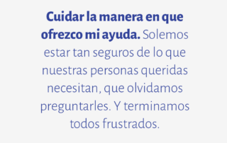 Cuidar la manera en que ofrezco mi ayuda. Solemos estar tan seguros de lo que nuestras personas queridas necesitan, que olvidamos preguntarles. Y terminamos todos frustrados.