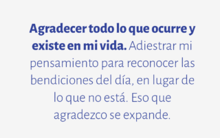 Agradecer todo lo que ocurre y existe en mi vida. Adiestrar mi pensamiento para reconocer las bendiciones del día, en lugar de lo que no está. Eso que agradezco se expande.