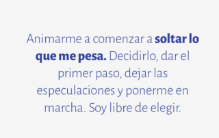 Animarme a comenzar a soltar lo que me pesa. Decidirlo, dar el primer paso, dejar las especulaciones y ponerme en marcha. Soy libre de elegir.
