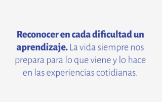 Reconocer en cada dificultad un aprendizaje. La vida siempre nos prepara para lo que viene y lo hace en las experiencias cotidianas.