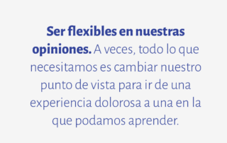 Ser flexibles en nuestras opiniones. A veces, todo lo que necesitamos es cambiar nuestro punto de vista para ir de una experiencia dolorosa a una en la que podamos aprender.