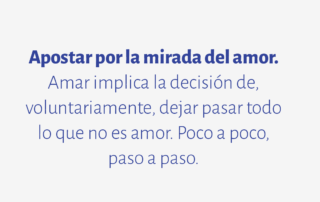 Apostar por la mirada del amor. Amar implica la decisión de, voluntariamente, dejar pasar todo lo que no es amor. Poco a poco, paso a paso.