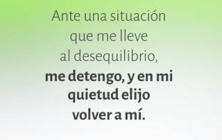Ante una situación que me lleve al desequilibrio, me detengo, y en mi quietud elijo volver a mí.