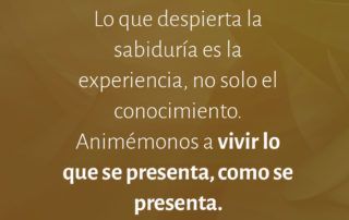 Lo que despierta la sabiduría es la experiencia, no solo el conocimiento. Animémonos a vivir lo que se presenta, como se presenta.