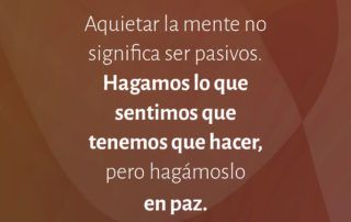 Aquietar la mente no significa ser pasivos. Hagamos lo que sentimos que tenemos que hacer, pero hagámoslo en paz.