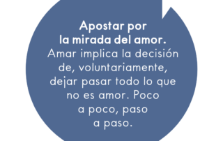 Apostar por la mirada del amor. Amar implica la decisión de, voluntariamente, dejar pasar todo lo que no es amor. Poco a poco, paso a paso.