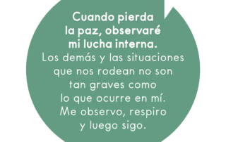 Cuando pierda la paz, observaré mi lucha interna. Los demás y las situaciones que nos rodean no son tan graves como lo que ocurre en mí. Me observo, respiro y luego sigo.