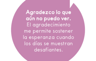 Agradezco lo que aún no puedo ver. El agradecimiento me permite sostener la esperanza cuando los días se muestran desafiantes.