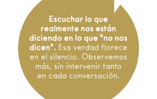 Escuchar lo que realmente nos están diciendo en lo que "no nos dicen". Esa verdad florece en el silencio. Observemos más, sin intervenir tanto en cada conversación.