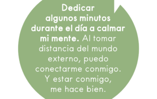 Dedicar algunos minutos durante el día a calmar mi mente. Al tomar distancia del mundo externo, puedo conectarme conmigo. Y estar conmigo, me hace bien.