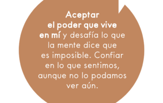 Aceptar el poder que vive en mí y desafía lo que la mente dice que es imposible. Confiar en lo que sentimos, aunque no lo podamos ver aún.