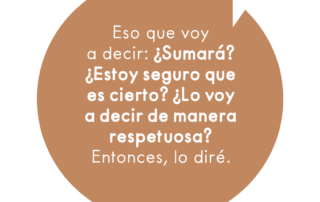 Eso que voy a decir: ¿Sumará? ¿Estoy seguro que es cierto? ¿Lo voy a decir de manera respetuosa? Entonces, lo diré.