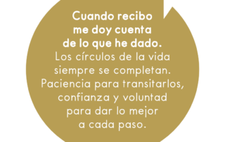 Cuando recibo me doy cuenta de lo que he dado. Los círculos de la vida siempre se completan. Paciencia para transitarlos, confianza y voluntad para dar lo mejor a cada paso.