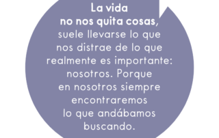 La vida no nos quita cosas, suele llevarse lo que nos distrae de lo que realmente es importante: nosotros. Porque en nosotros siempre encontraremos lo que andábamos buscando.