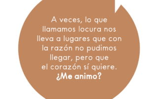 A veces, lo que llamamos locura nos lleva a lugares que con la razón no pudimos llegar, pero que el corazón sí quiere. ¿Me animo?