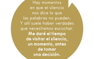 Hay momentos en que el silencio nos dice lo que las palabras no pueden. Y allí suele haber verdades que necesitamos escuchar. Me daré el tiempo de visitar el silencio, un momento, antes de tomar una decisión.