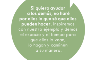 Si quiero ayudar a los demás, no haré por ellos lo que sé que ellos pueden hacer. Inspiremos con nuestro ejemplo y demos el espacio y el tiempo para que ellos lo vean, lo hagan y caminen a su manera.