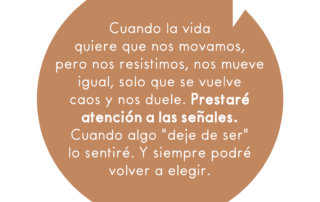 Cuando la vida quiere que nos movamos, pero nos resistimos, nos mueve igual, solo que se vuelve caos y nos duele. Prestaré atención a las señales. Cuando algo "deje de ser" lo sentiré. Y siempre podré volver a elegir.