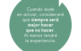 Cuando dude en actuar, consideraré que siempre será mejor hacer que no hacer. Al menos tendré la experiencia.