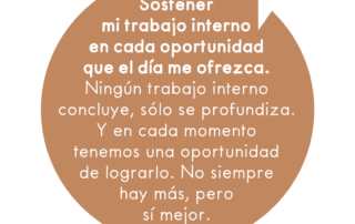 Sostener mi trabajo interno en cada oportunidad que el día me ofrezca. Ningún trabajo interno concluye, sólo se profundiza. Y en cada momento tenemos una oportunidad de lograrlo. No siempre hay más, pero sí mejor.