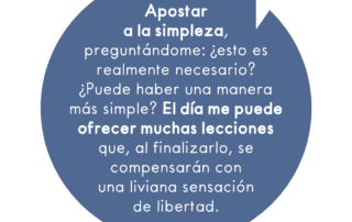 Apostar a la simpleza, preguntándome: ¿esto es realmente necesario? ¿Puede haber una manera más simple? El día me puede ofrecer muchas lecciones que, al finalizarlo, se compensarán con una liviana sensación de libertad.