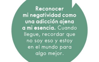 Reconocer mi negatividad como una adicción ajena a mi esencia. Cuando llegue, recordar que no soy eso y estoy en el mundo para algo mejor.