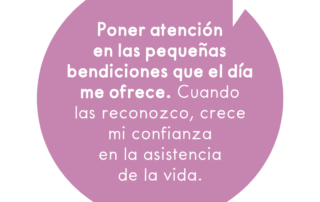 Poner atención en las pequeñas bendiciones que el día me ofrece. Cuando las reconozco, crece mi confianza en la asistencia de la vida.
