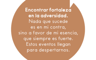 Encontrar fortaleza en la adversidad. Nada que sucede es en mi contra, sino a favor de mi esencia, que siempre es fuerte. Estos eventos llegan para despertarnos.