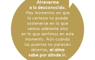 Atreverme a lo desconocido. Hay momentos en que la certeza no puede sostenerse en lo que vemos adelante sino en lo que sentimos en este momento. Aún cuando las puertas no parecen abiertas, el alma sabe por dónde ir.