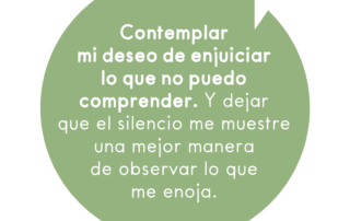 Contemplar mi deseo de enjuiciar lo que no puedo comprender. Y dejar que el silencio me muestre una mejor manera de observar lo que me enoja.