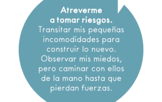 Atreverme a tomar riesgos. Transitar mis pequeñas incomodidades para construir lo nuevo. Observar mis miedos, pero caminar con ellos de la mano hasta que pierdan fuerzas.