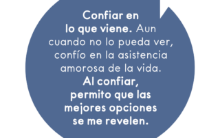Confiar en lo que viene. Aun cuando no lo pueda ver, confío en la asistencia amorosa de la vida. Al confiar, permito que las mejores opciones se me revelen.