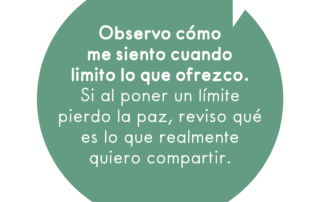 Observo cómo me siento cuando limito lo que ofrezco. Si al poner un límite pierdo la paz, reviso qué es lo que realmente quiero compartir.
