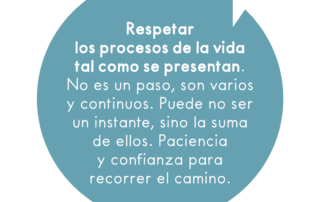 Respetar los procesos de la vida tal como se presentan. No es un paso, son varios y continuos. Puede no ser un instante, sino la suma de ellos. Paciencia y confianza para recorrer el camino.