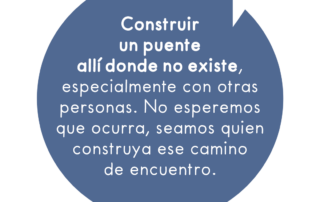 Construir un puente allí donde no existe, especialmente con otras personas. No esperemos que ocurra, seamos quien construya ese camino de encuentro.