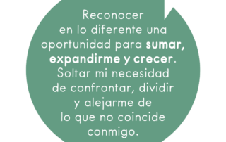 Reconocer en lo diferente una oportunidad para sumar, expandirme y crecer. Soltar mi necesidad de confrontar, dividir y alejarme de lo que no coincide conmigo.