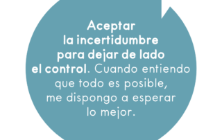 Aceptar la incertidumbre para dejar de lado el control. Cuando entiendo que todo es posible, me dispongo a esperar lo mejor.