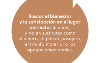 Buscar el bienestar y la satisfacción en el lugar correcto: el amor, y no en sustitutos como el dinero, el placer pasajero, el triunfo material o los apegos emocionales.