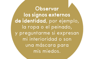 Observar los signos externos de identidad, por ejemplo, la ropa o el peinado, y preguntarme si expresan mi interioridad o son una máscara para mis miedos.