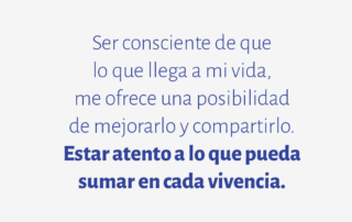 Ser consciente de que lo que llega a mi vida, me ofrece una posibilidad de mejorarlo y compartirlo. Estar atento a lo que pueda sumar en cada vivencia.
